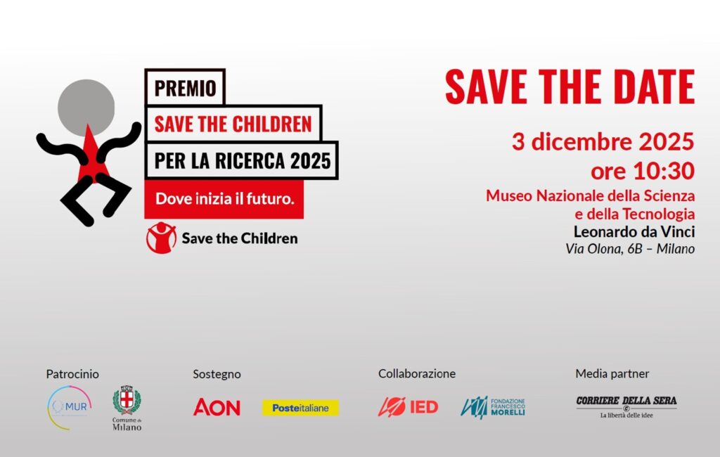 Mercoledì 3 dicembre, dalle ore 10.30, a Milano il Museo Nazionale della Scienza e della Tecnologia Leonardo da Vinci, si terrà la cerimonia di consegna del “Premio Save the Children per la ricerca”, alla sua prima edizione.